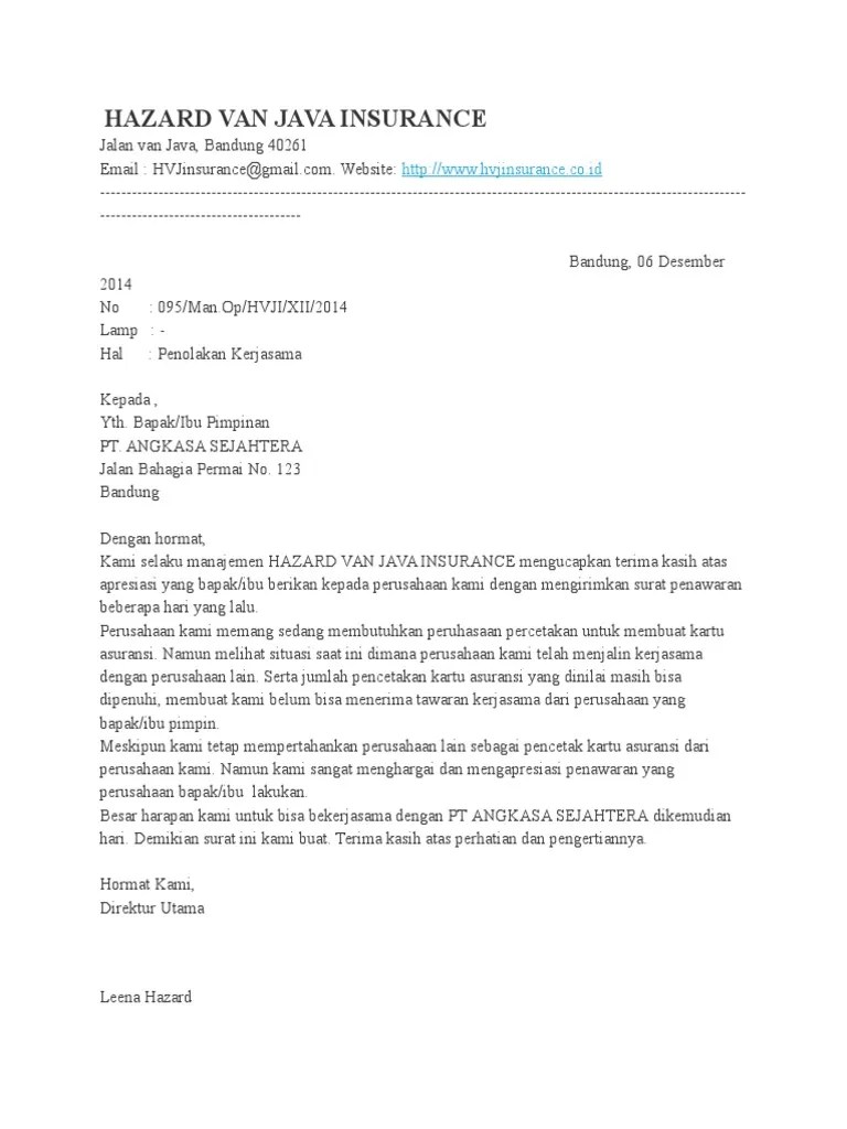 Gimana sih cara menolak tawaran kerja? Offering letter adalah surat penawaran yang ditujukan kepada kandidat terpilih untuk bekerja di . Terdapat dua hal yang wajib kamu cantumkan dalam surat penolakan ini, yaitu ungkapan penghargaan atas tawaran kerja dan tulisan untuk . Tip dan petua contoh surat menolak tawaran kerja. Cara menolak tawaran kerja lewat email. Contoh surat menolak tawaran kerja yang baik dan sopan. Simak artikel ini untuk mengetahui cara menolak tawaran kerja secara. Berikut adalah contoh bagaimana dengan sopan menolak sebuah tawaran pekerjaan. Contoh isi surat/email menolak tawaran kerja di bawah ini bisa . Thanks, but i won't be able to… (terimakasih, tapi saya tidak akan bisa…) contoh surat penolakan tawaran kerja. Mungkin sebagian besar dari kita pernah mengalami kondisi pada saat melamar pekerjaan . 12 desain terkait dengan contoh surat menolak tawaran kerja. Berikut adalah contoh bagaimana dengan sopan menolak sebuah tawaran.